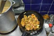 ニンニクと生姜はミジン切り・玉ねぎの入るボールの直径は30センチ ざく切りです ニンニクと生姜はミジン切りです