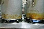 また、鍋の中身が少ない状態で強力バーナーを使うと、鍋底が変形(溶ける)事もあります。