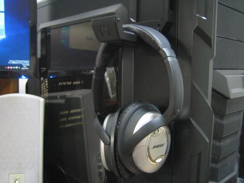 実際ヘッドホンを置いてみた感じ。ヘッドホンはBose QuietComfort2です。ずり落ちることもなく安定しています。
