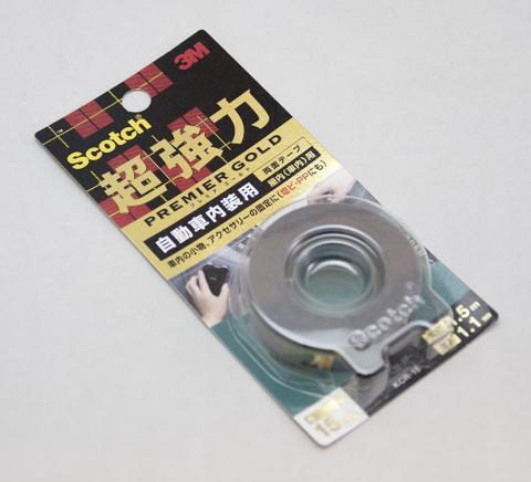 本品は、車内の小物固定用として出ている「自動車内装用」では一番強力な「超強力両面テープ プレミアゴールド」になります。
