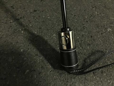ボタンをワンプッシュするだけで、完全に開きます。閉じる時も、ワンプッシュで傘が閉じ、あとは両手で縮めるだけです。真横の持って行いのがポイントです。
