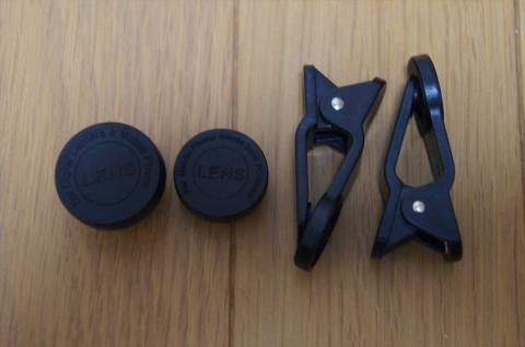 左から魚眼レンズ、ワイドレンズ、クリップ2個という商品構成です。