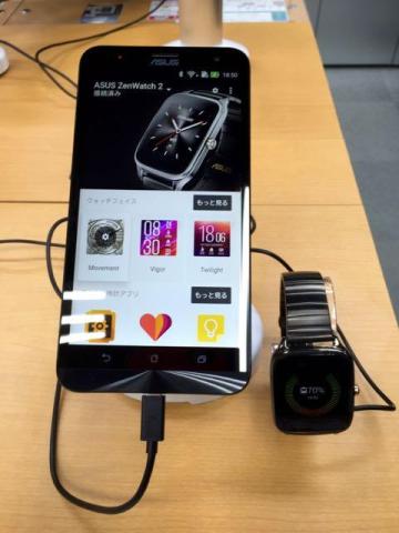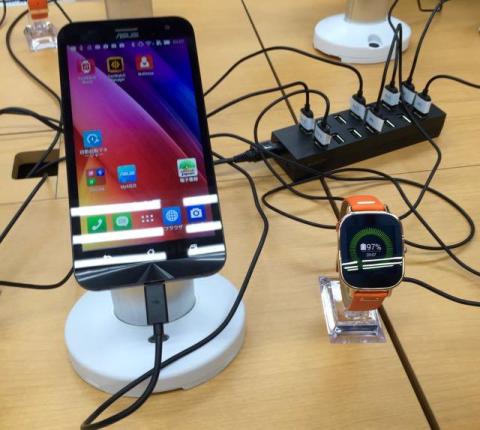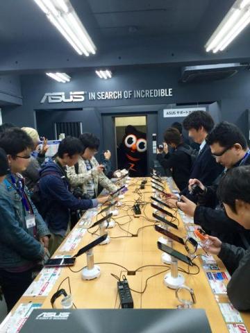 なかなか混雑しています。ずらっと並んだZenFone2とZenWatch2