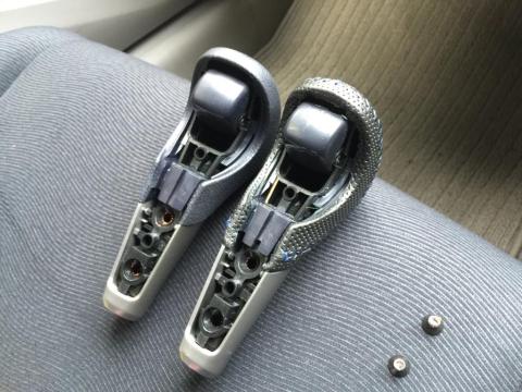 純正はゴムのような質感ですので、本革の手触りはシックリきます。