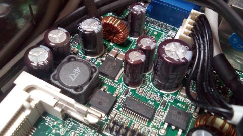 ↓こちらはパソコンの基板を接写。フォーカスは手前のFETに合わせています。少し暗い環境で撮影したのでコントラストが低いですが、1005サイズのコンデンサも少々甘いながらもハッキリ写っているので、分解時のメモ写真にも問題ありませんw