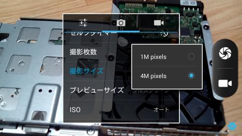 ただ、Android4.4 kitkat?の欠点なのか、デフォルトでは内部メモリにしか書き込みできません。カメラから保存先を変更することはできず、設定のストレージのデフォルトの書き込みデバイスでSDカードを選択する必要があります。