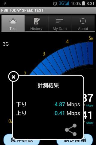 5Mbps近く出ているので上等でしょう。朝8時の時点です。
