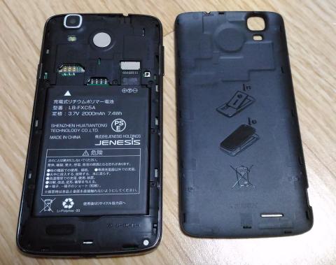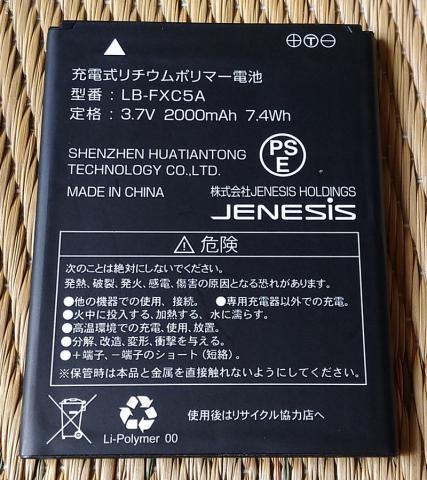 その前にこれがバッテリーです。容量は2000mAhと少な目ですが、本機は液晶の解像度が低い為、描画に電力を喰いにくく割と省電力との噂があります。