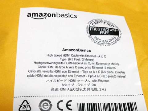「Amazonベーシック ハイスピードHDMIケーブル 2.0m (タイプAオス- ミニタイプCオス、イーサネット、3D、オーディオリターン対応)」です。