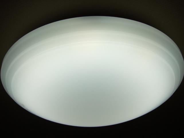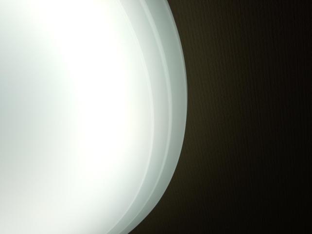 と同じく、ナチュラル≠昼白色(5000K)(調色モード:ナチュラル)では、マルチアングルシステムⅡと、ドーム形状に戻った?アクリルカバーの見直しにより、天井隅角にまで光が届きます。
