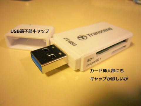 USB 3.0インターフェース(キャップ付き)で、SDHC UHS-I / SDXC UHS-I / micro SDHC UHS-I / micro SDXC UHS-I規格までの読み書きが高速に出来る。との事