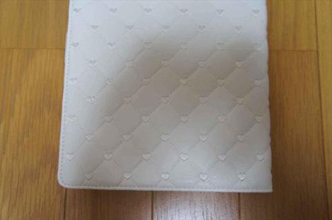 白地にハートとリボンをあしらった、いかにも女性向けのケースです。