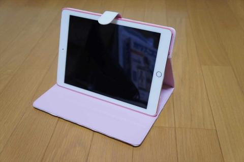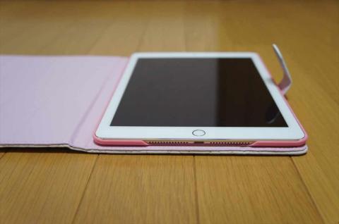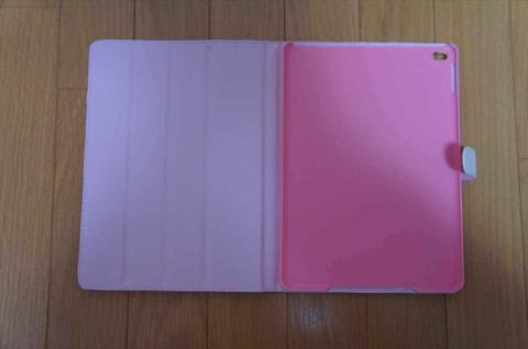 内側は、濃淡でピンクの配色。表面素材もやわらかいものを使っているので、フィルムを貼っていないiPadでも、画面に傷が入るようなことはありません。