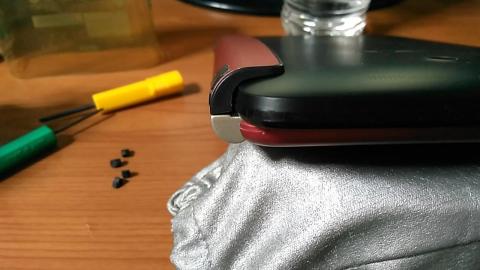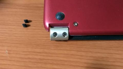 最初にヒンジ部のゴム4点をマイナスドライバー(精密ドライバーが最適)でとります。