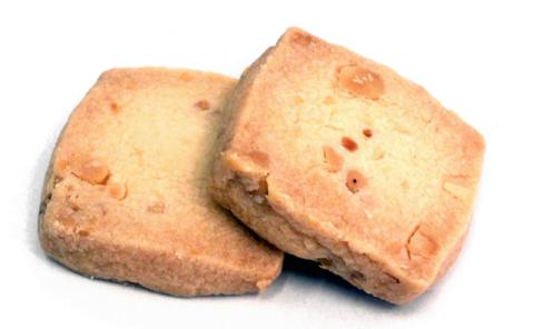 マカダミアナッツの香ばしい風味と食感を引き立たせるために、クッキー生地はホロホロとほどけるような軽い食感に焼き上げています。