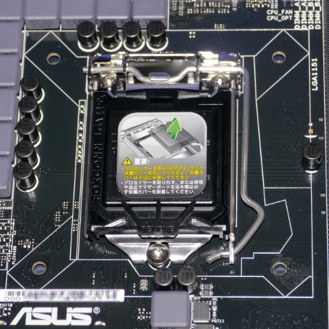 マザーボードのCPUソケットには保護カバーが付いてます。