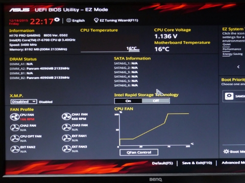 マザーボードは、ASUS H170 PRO GAMING