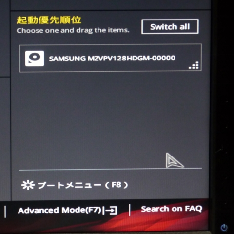 M.2 SSDも起動ドライブとして認識されています。