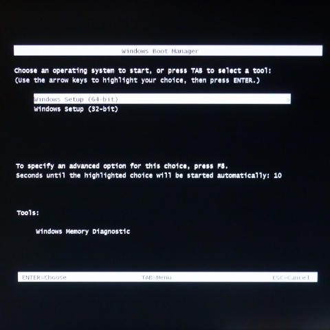 無事USBブートして、32bit/64bitの選択画面が表示されました。