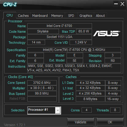 まず、CPU-Zで基本仕様のチェック