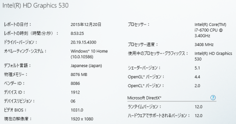 はやり内臓GPUの性能が上がったといっても、「Intel(R)HD Graphics 530」では