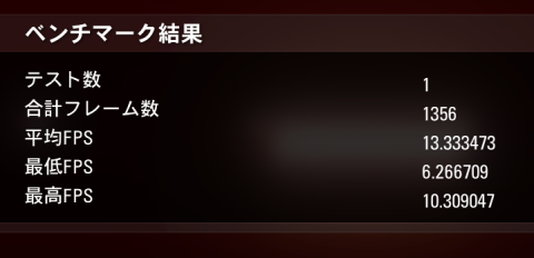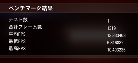 平均FPSが13.3とかなり苦しい。