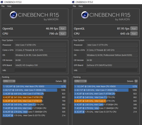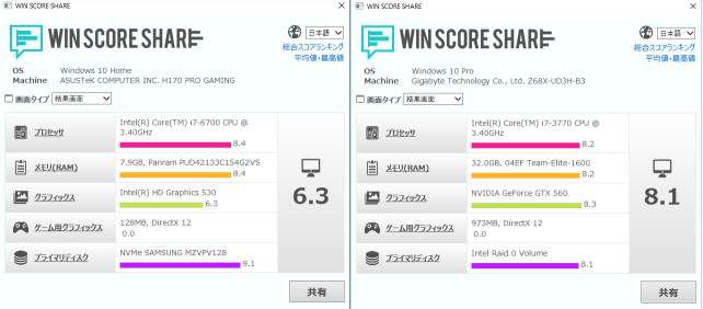 これも、左がインテル(R) Core(TM) i7-6700 プロセッサーのマシンです。