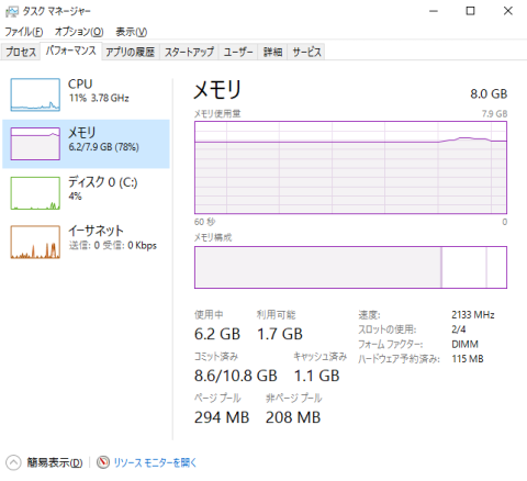 4GB×2枚で8GBを載せていましたが、このゲームはかなりメモリーが必要みたいで