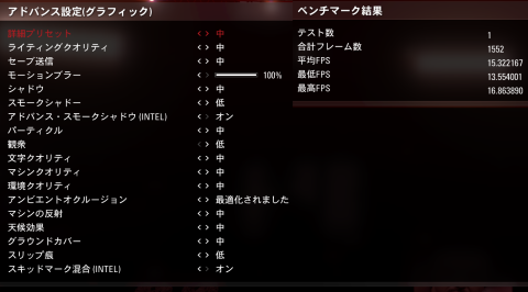 平均FPS15.3と若干上がりましたが、これじゃな~
