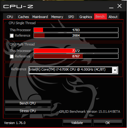 ↓MSI用にカスタマイズされたCPU-Zでベンチマーク取ってみました。