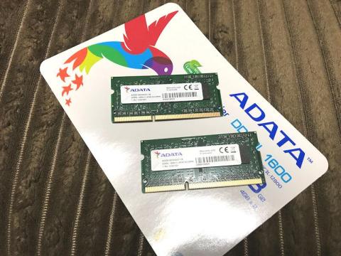 仕方ないので近々仕事で東京に行く際にでも中古メモリーを物色してこようと思っていたのですが、その前にここ最近の価格としては極めて手頃という水準の、ADATA製DDR3L-1600 SODIMM 4GB 2枚組のパッケージ、ADDS1600W4G11-2を見つけたため、これを調達することにしました。もっとも、DRAMメーカー製ではないメモリーモジュールは、搭載チップの素性が確認できない分、中古よりも安心感は劣る場合もあるのですが…。
