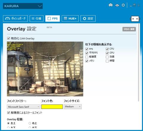 フル画面でのゲームプレイ時に各種PCステータスを表示出来ます。