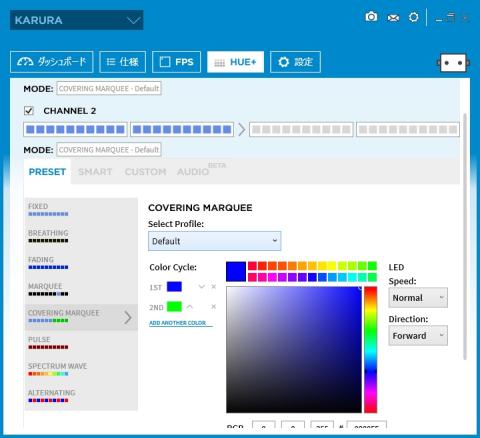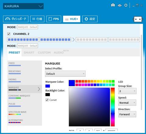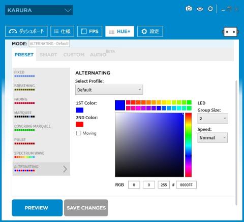 ALTERNATINGは2色2ブロックごとに色が入れ替わって光ります。