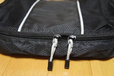 意外と見落としがちなので、ファスナーです。両引きファスナーを採用。中にものをパンパンに入れている場合は、片引きファスナーでも開けやすいですが、あまりものを入れていない場合は、両引きファスナーが開けやすいです。