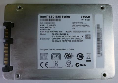 Intel製SSD、535シリーズの中堅、240GB品です。