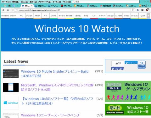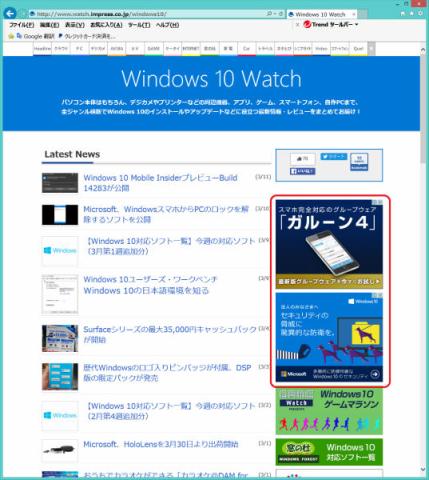 IEで表示した「Windows 10 Watch」ページですが、中央の右側の広告が表示されています。