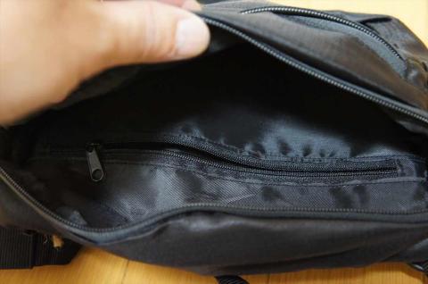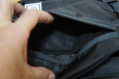 外側のポケットは、中にはメッシュ素材の仕切りがあります。