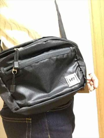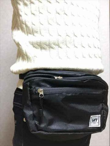 ポリエステル素材のバッグで、サイズは約タテ16m×ヨコ23cm。マチも7㎝ほどなので、ウエストバッグとしては大きめの製品になります。
