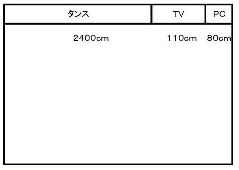 部屋の大まかなレイアウトですが、タンスの上とPCの上にスピーカーを設置したらいいのではと思い、改造をしてみることにしました。