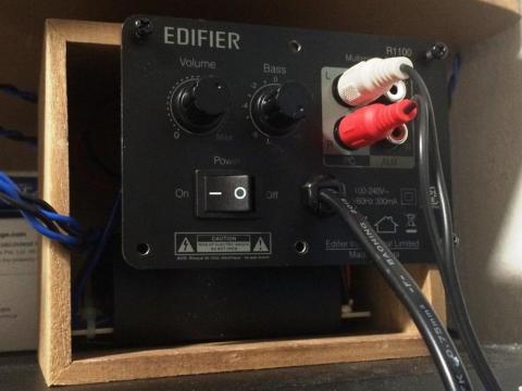 コントロールユニットで電源のオンオフと音量、低音の調整が出来るようになっています。