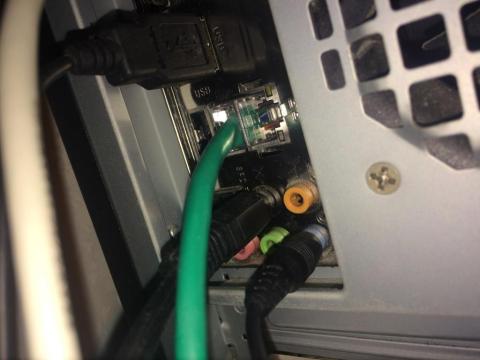 PCの背面の緑端子に接続することで簡単に接続出来ます。