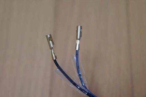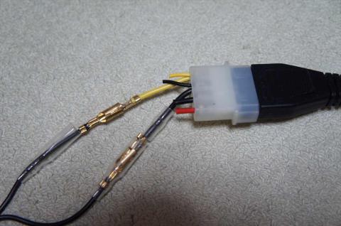 本体からはこのギボシ2本が出ています。これを使って電源を取ります。