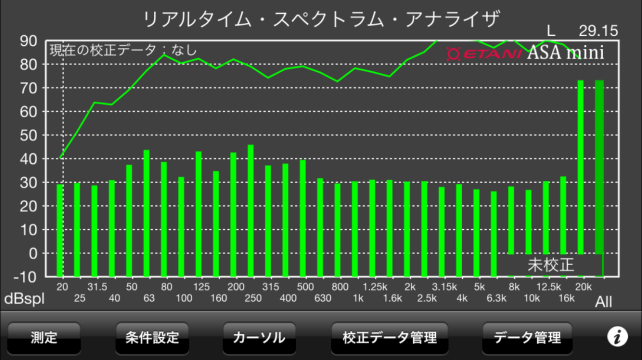 Etani RTAというiPhone向けのスペクトルアナライザーアプリを使用して、周波数特性を計測してみた。