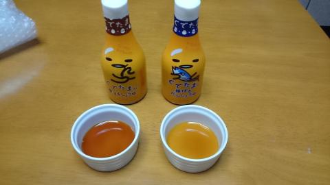 「ぐでたまに捧げるだししょうゆ」は、だしが入っているため、色は薄い。