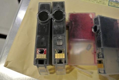 この特性を利用して、ICチップチップ無しで売られている非常に安価な互換カートリッジを購入し、純正のICチップを移植して使っていました。