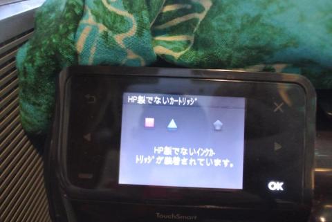 このICチップ付き社外品カートリッジを使う場合は、「HP製でないカートリッジが装着されています」のステイタス画面を経て続行コマンドに入るという一手間がかかります。