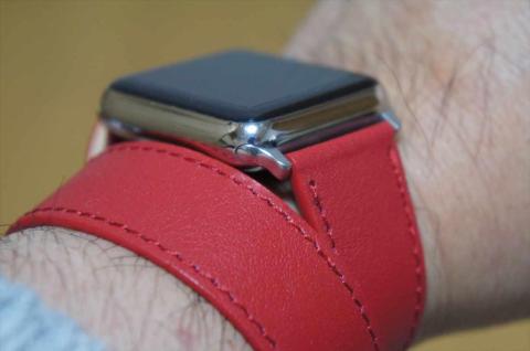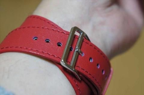 このように巻きます。時計とブレスレットを一緒に着けている感じですね。