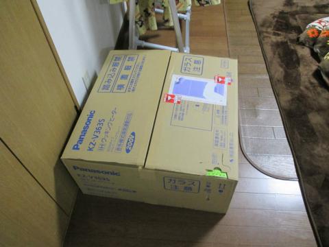 到着したクッキングヒーターです。梱包された状態で28Kgありました。