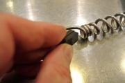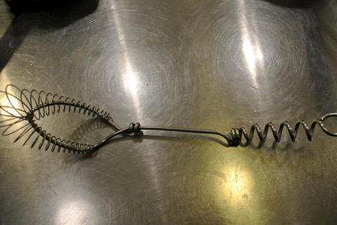 泡立として使う部分は別コードの細いステンレスが螺旋を巻くように共柄コードに