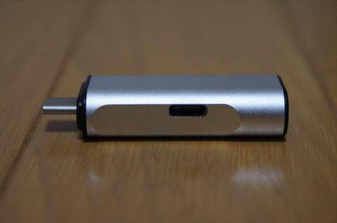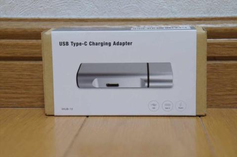 このアダプタは何をするものかというと、Type-C対応機にUSB機器を接続するためのハブのようなものです。そしてその上、Type-Cでの充電を同時に行えます。上記の対応機には、標準でType-Cの充電ケーブルが付属しています。そのケーブルを、横にあるType-Cのポートに接続するということです。